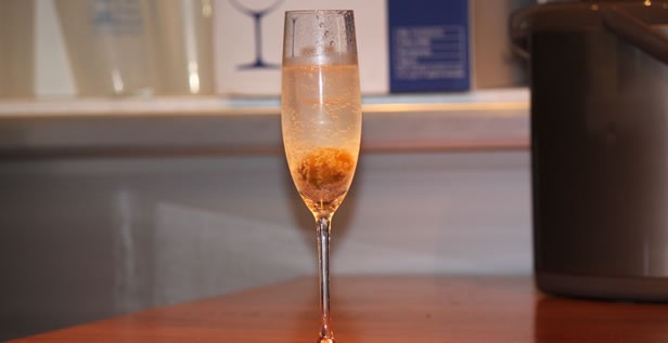 ※ この日のウェルカムドリンクは、梅シロップを炭酸水で割った冷たい飲み物でした。中には、シロップに漬け込んだ梅の実入りです。