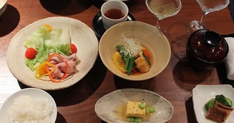8月の和食料理教室では、暑い夏を乗り切るために精のつく鰻や鱧、豚肉などの食材がよく登場いたします。また、茄子やとうもろこしなどの旬野菜は、食欲が増すように、スープや冷やし炊き合わせにしました。