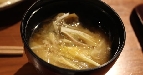 味噌汁に入れる茄子を焼きなすに変え、茗荷を添えることで風味が変わります。