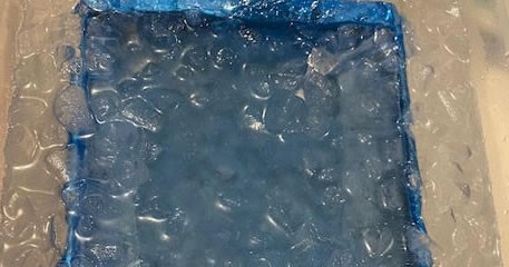 流し缶に流し入れ、氷水で一気に冷やしました。