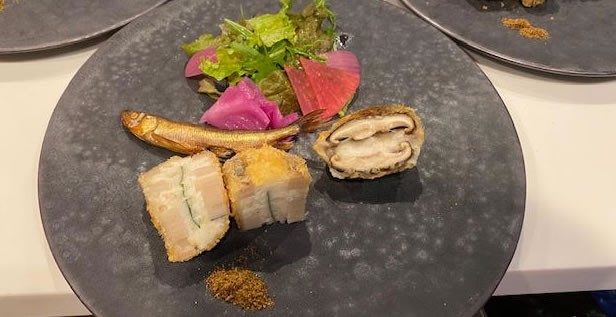 パン粉をつけて揚げたのは、天ぷら粉と違うサクッとした食感をお楽しみ頂けるようにとのことでした。