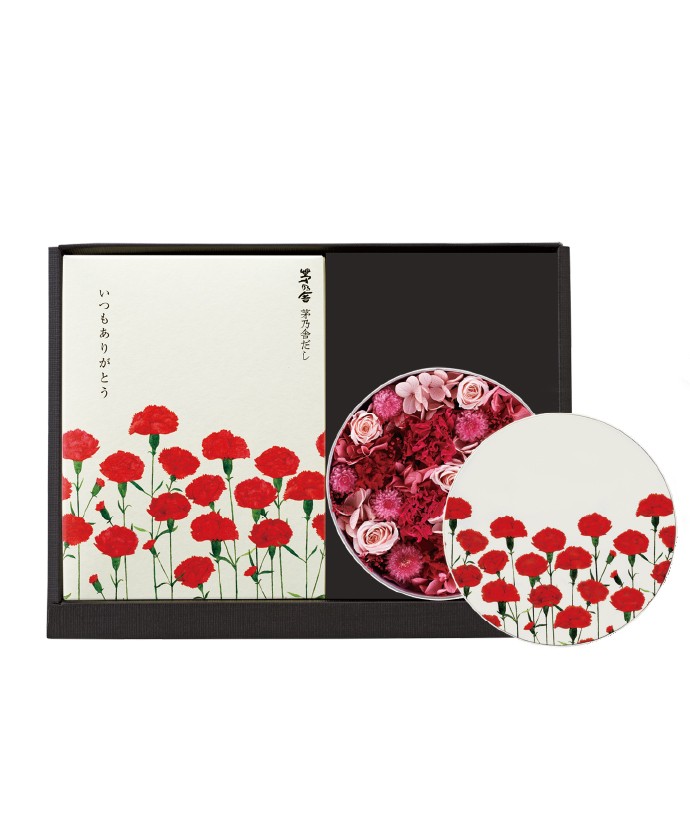 毎年人気のプリザーブドフラワーとだしのセットをはじめ、「減塩茅乃舎だし」の母の日贈答箱もネット限定で取り揃えております。