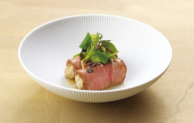 ・一品 嘉穂牛ローストビーフ 蓮根餅巻き
