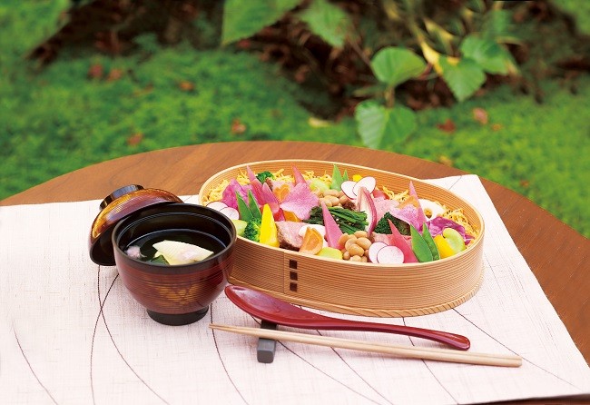 美しい曲線の博多曲物に詰められた小さな春。蓋を開けたその瞬間、ぱっと華やかな歓びに包まれるお花見箱はこの季節だけのちょっぴり贅沢な味わいです。甘辛く炊いたはかた地どりのそぼろや低温調理でじっくり柔らかく仕上げた嘉穂牛のローストビーフに、春の豊かな色彩を散りばめました。