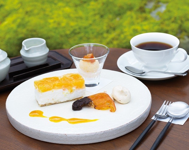 砕いたタルトを敷き詰めた食感の良い生地の上に、清見オレンジの皮を混ぜ込んだ濃厚なレアチーズクリームと、まるで宝石のような果肉入りゼリーを重ねた、二層仕立てのレアチーズケーキ。ほろ苦いオレンジピールとチョコレートの甘味が絶妙なオランジェットや、優しい口溶けのメレンゲージュ、自社米糀100%の自然な甘みを生かしたあま糀アイスとともに、凝縮されたフレッシュな味わいをご堪能ください。