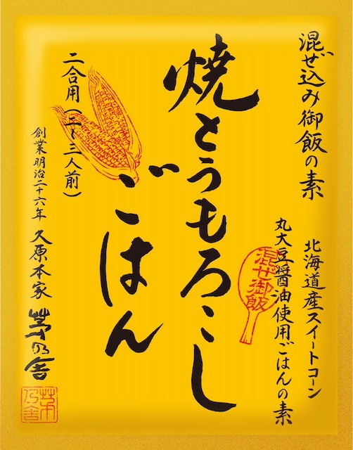 北海道産の粒が大きく甘みの強いスイートコーンに、焼くひと手間を加えた焼とうもろこしが甘く香ばしい、夏季限定の御飯の素です。お子様にも好評な商品です。