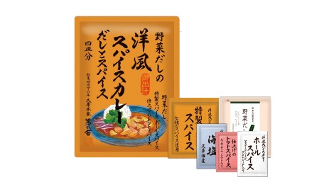 「減塩茅乃舎だし」を使用した、破って使うだしがきいた和風カレーつけ麺キットです。