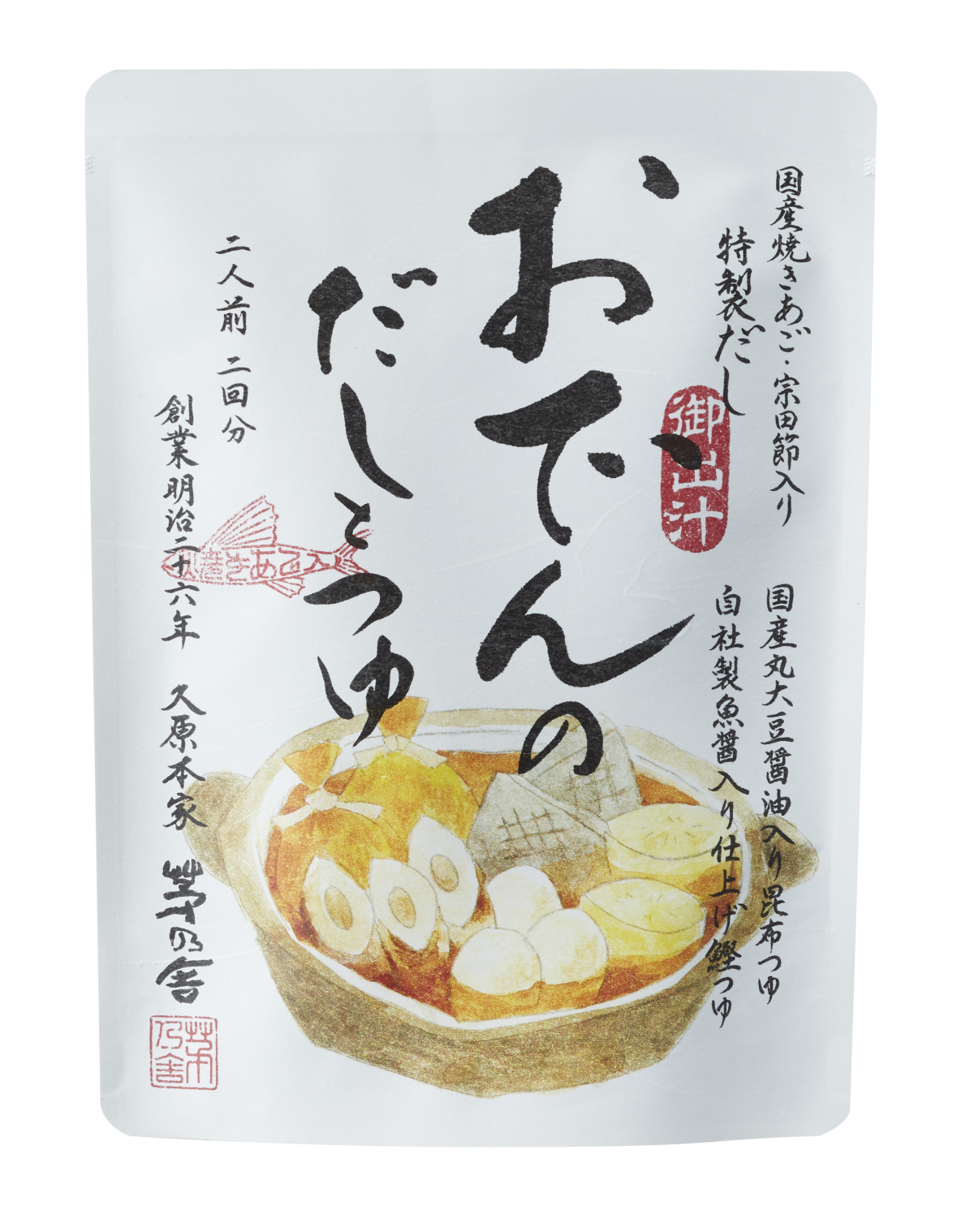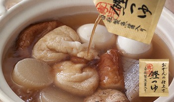 ご家庭でも簡単においしく仕上がる「3段階の調味」のだしとつゆです。具材の芯まで味が染みたおでんは絶品です。