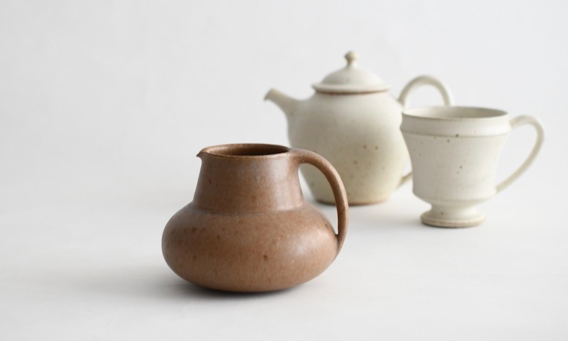 | 現在は東京都で作陶する松塚裕子さんは、高校卒業まで福岡市で育ち、今もお父様が同地にお住まいです。イギリスの民衆の歴史を専門とする研究者の職を退かれて、読書と庭仕事を楽しむお父様の姿から、自らがなぜ土に向かい、器を作る道を選んだのをあらためて感じる松塚さん。働く形は違っていても、仕事に向かう心持ちを受け継いでいることに、陶芸を深めながら気づいていく姿が綴られています。 釉薬の彩どりも美しい、日々の暮らしを彩るカップやポット、ピッチャーなどが出品されます。 |