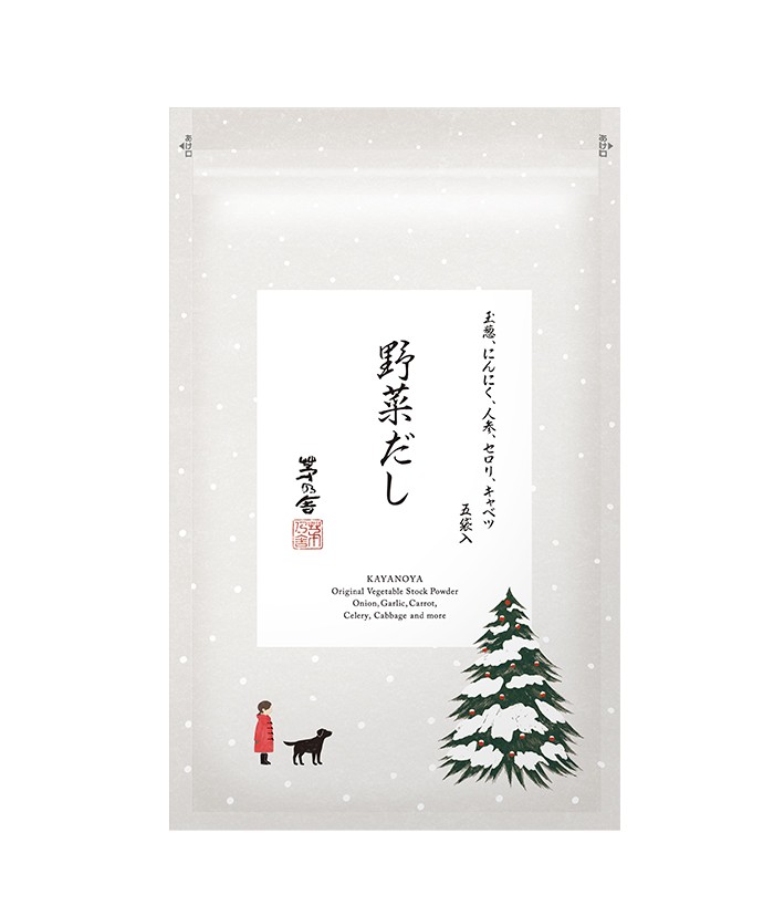 定番人気の野菜だしを、クリスマス限定パッケージでご用意しました。玉ねぎ、にんにく、人参、セロリ、キャベツ。5種の国産野菜の甘みや香味を凝縮したコンソメ風の洋風だしです。スープやパスタなど洋風料理にお使いください。